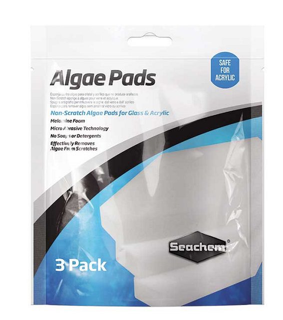 The Seachem Algae Pads 25mm are non-scratch algae pads for glass & acrylic. The melamine foam uses micro abrasive technology to easily remove algae from the sides of your aquarium. Seachem Algae Pads 25mm are particularly effective at removing algae from scratches. They are chemically inert and do not use soaps or detergents. Their white color contrasts against dark algae making it easier to see when areas are fully clean.